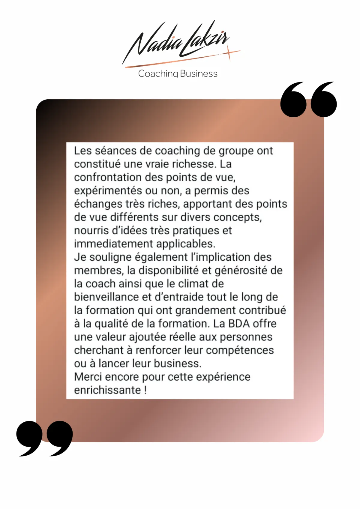 Je suis Nadia Lakzir, mentor stratégique et coach business.